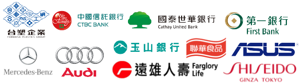 中國信託、第一金控、玉山金控、台企銀、台灣銀行、土地銀行、合作金庫、國泰世華、遠雄人壽、國泰人壽、新光人壽⋯等 - ◆ 製造/國際連鎖業: